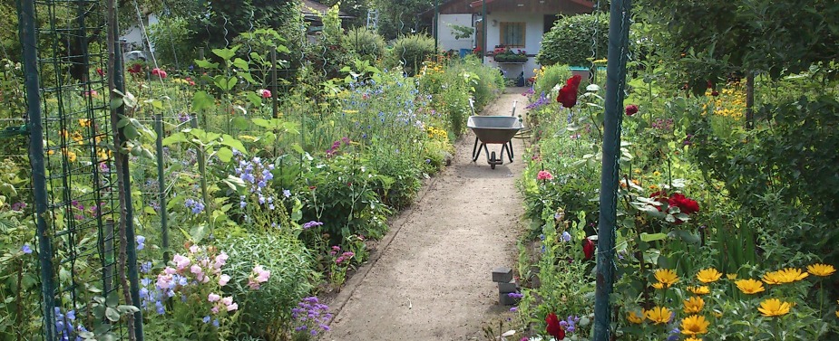 Zur Freude der Familie wurden alle Freiflächen im Garten mit Gemüse bestellt, denn in Geschmack und Qualität ist es eben nicht zu schlagen. Sind die Kinder aus dem Haus, wird nicht mehr so viel eigene Ernte benötigt. Eine Teilfläche kann nun zum beispielsweise in eine insektenfreundliche Blumenwiese umgewandelt werden. Das Angebot an ein- und mehrjährigen Blumenmischungen für unterschiedliche Standorte ist sehr vielfältig. Ein solcher farbenfroher, hochfloriger Teppich aus einer bunt gemischten Pflanzengemeinschaft, die neben verschiedenen Wildblumen auch Gräser und Kräuter enthält, benötigt kaum Pflege. „Unkräuter“ lassen sich gut verdrängen, und im Sommer zieht die Blumenpracht nicht nur Biene & Co. an, sondern kann auch für Menschen eine wahre Augenweide sein. Ein positiver Aspekt ist zudem der Selbsterhaltungstrieb der Pflanzen, denn nach der Mahd, im Herbst oder im folgenden Frühjahr, kommen fast alle Blumen durch Selbstaussaat wieder zum Vorschein.