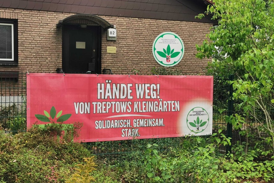 Der Landesverband dankt im Namen der betroffenen Gartenfreunde in Treptow-Späthsfelde allen Banner-Akteuren für die öffentlich gezeigte Solidarität ihres Vereins: Tausend Dank in die Bezirke! Leserinnen und Leser seien hier gewiss: es hängen mehr rote Banner in Berlin, als wir hier zeigen können.